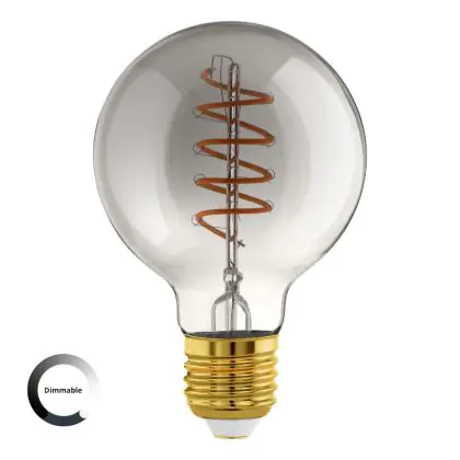 La Eglo LED Globe E27 Filamento Smokey 4W 100lm - 820 Bianco Molto Caldo | Dimmerabile - Sostitutiva 15W è la perfetta sostituzione per la tua lampada convenzionale 15W con attacco E27 grazie alla sua tecnologia LED. Passare a LED ti offrirà tanti vantaggi!