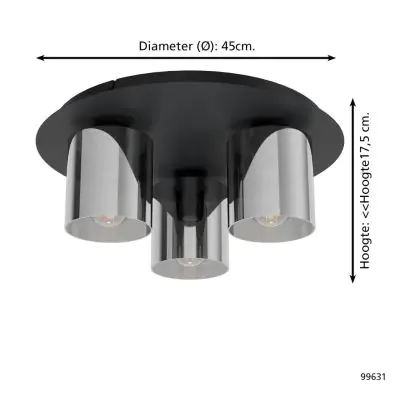 Eglo Luce da soffitto Gorosiba 1 Acciaio Nero | IP20 - Adatto per 3x E27