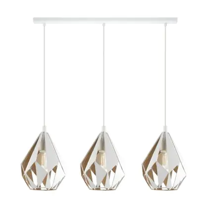 Eglo Luce Pendente Carlton 1 Acciaio Bianca Oro | IP20 - Adatto per 3x E27