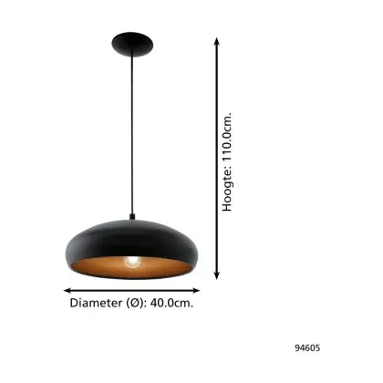 Eglo Luce Pendente Moga 1 Acciaio Nero Rame | IP20 - Adatto per 1x E27