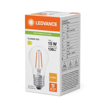 Grazie al suo consumo di soli 1W e la sua lunga durata di 15000 ore, puoi risparmiare fino al 60% di energia e con costi di manutenzione abbattuti. Le tradizionali lampadine a incandescenza durano solamente 1000 ore. Installare la lampadina LED è veramente facile, basta svitare la vecchia lampadina E27 ( una volta fredda ) e avvitare successivamente la nuova lampada di Ledvance con forma Pera nel portalampade. Questo prodotto di Ledvance è di qualità professionale.