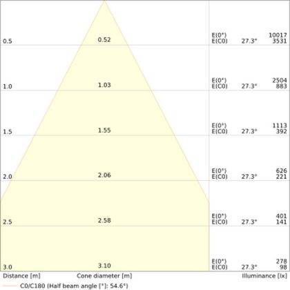 ![]() Il codice colore è una combinazione di resa cromatica (CRI) e colore della luce (Kelvin). La prima cifra indica la resa cromatica (1 = resa del colore molto bassa, 9 = massima resa del colore), mentre la seconda e la terza si riferiscono al colore della luce. Esempio: il codice colore 830 indica una buona resa cromatica (8) e luce bianca calda (3000K). |
