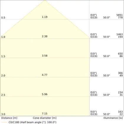 L'apertura del fascio luminoso indica l'angolo del fascio di luce proveniente da una lampada o lampadina. Si misura in gradi (D) e più piccolo è l'angolo, più piccola è l'apertura del fascio di luce.