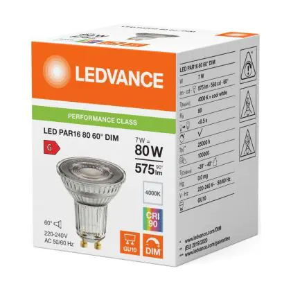 Descrizione Ledvance LED PAR16 GU10 Riflettore 7W 575lm 60D - 940 Bianco Freddo | Miglior Resa Cromatica - Dimmerabile - Sostitutiva 80W