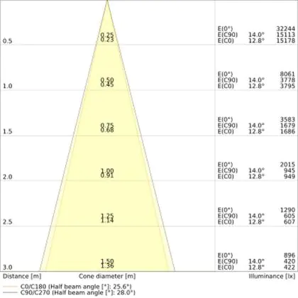 L'apertura del fascio luminoso indica l'angolo del fascio di luce proveniente da una lampada o lampadina. Si misura in gradi (D) e più piccolo è l'angolo, più piccola è l'apertura del fascio di luce.