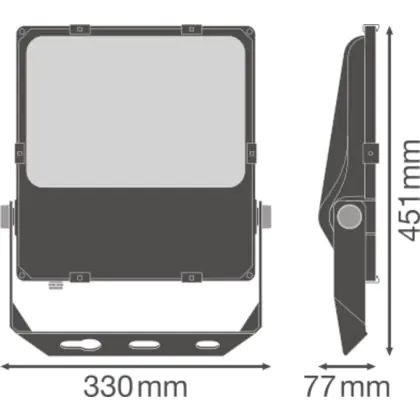 Questo proiettore LED Ledvance è idoneo per un uso in spazi all’aperto (protezione IP66) come illuminazione architetturale o in industrie, stadi, campi sportivi e spazi a rischio di incendio tramite accumulo di polvere.