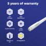 Questo prodotto ha una durata di vita di 50000 ore. In un ufficio questa lampada durerà più di 15 anni (52 settimane l’anno, 10 ore al giorno dal lunedì al venerdì). La durata della vita media utile è molto più lunga di un tubo standard, che ha una durata media di 24.000 ore.