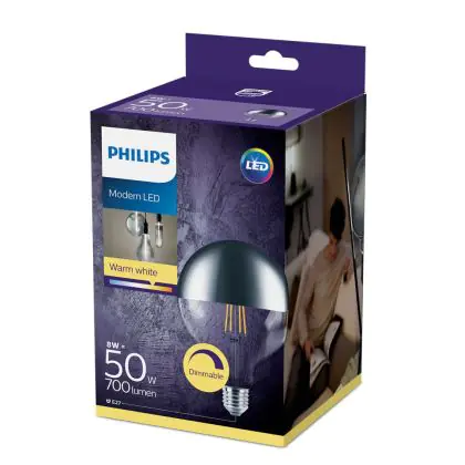 Philips Classic LED Globe E27 Filamento Mirror Chiara 120mm 8W 700lm - 827 Bianco Molto Caldo | Dimmerabile - Sostitutiva 50W