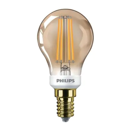 La lampada Philips Classic LED Lustre E14 Sferica Filamento Oro 5W 350lm - 822 Bianco Molto Caldo | Dimmerabile - Sostitutiva 35W è il sostituto perfetto per le tue vecchie lampade 32W con attacco a vite piccolo E14 grazie alla sua tecnologia LED. Passare a LED ti offrirà molti vantaggi!