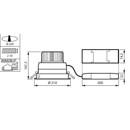 Descrizione Philips Downlight LED LuxSpace Compatto Altezza ridotta DN570B VLC-E 52.8W 6200lm 80D - 830 Luce Calda | 214mm - Aluminium Riflettore - Dali Dimmerabile
