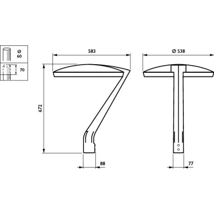Se vuoi sostituire un vecchio apparecchio di illuminazione stradale scegli una nuova lampada LED. I LED hanno alta potenza luminosa e basso consumo energetico, come questo apparecchio che consuma solo 46 W. Ha un ciclo di vita di circa 100000 ore, che fa risparmiare anche sui costi di manutenzione e sostituzione.