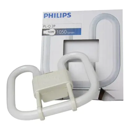 Philips PL-Q 2P sono lampade fluorescenti a doppia D, di forma quadrata e molto efficienti. Hanno una base di tipo GR8 con due pin. Le Philips PL-Q 16W 835 2P presentano una temperatura di colore di 3500K ed hanno una durata media di circa 10.000 ore. La potenza di queste lampade é di 16W.