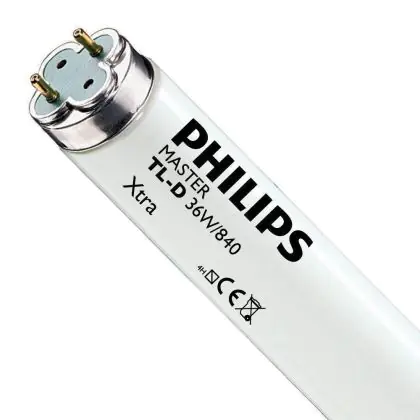 I Philips TL-D Xtra 36W 840 - 120cm (MASTER) sono tubi fluorescenti caratterizzati da una potenza di 36W e provvisti di attacco G13 che rientrano nella classe energetica 'A'. Questi tubi, contraddistinti da un basso tasso di guasti precoci, misurano 120cm. La vita dei medesimi é in media di 36.000 ore e la lunga vita é un elemento tipico della linea Philips TL-D Xtra. Un accenno all'indice di resa cromatica che si pone nell'intervallo di 80-89Ra. I tubi fluorescenti in questione, grazie alla temperatura di colore di 4000K, emettono una luce bianca fredda.