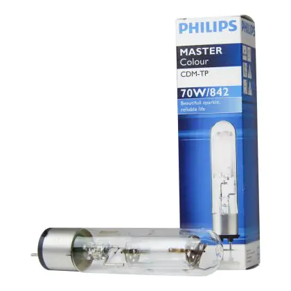 Le Philips CDM-TP 70W 842 PG12-2 (MASTERColour) sono lampade a scarica compatte con protezione tubolare che garantiscono stabilità di colore per tutta la loro durata di vita pari a 16.000 ore. Queste lampade, che emettono una luce brillante, hanno una potenza pari 70W e presentano una base del tipo PG12-2. L'indice di resa cromatica si colloca nell'intervallo di 80-89Ra, a testimonianza dell'elevata resa dei colori.