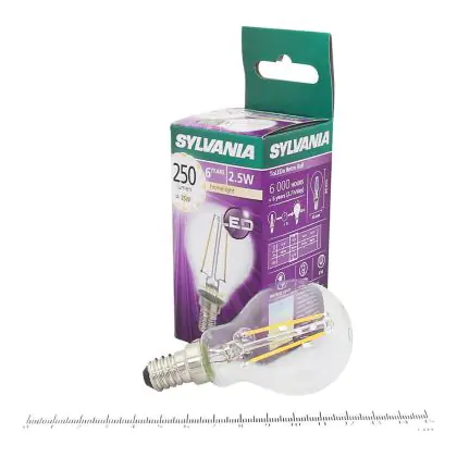 Descrizione Sylvania ToLEDo Retro E14 Sferica Filamento Chiara 4W 250lm - 827 Bianco Molto Caldo | Sostitutiva 40W